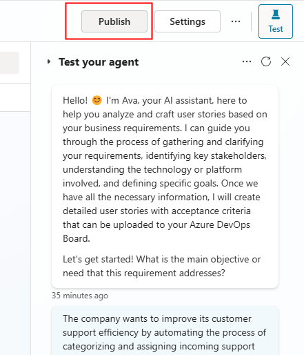 In this blog post, I will walk you through the process of creating Ava Agent, an AI assistant built using Copilot Studio. Ava stands for Analyze, Validate, and Author, reflecting its role in helping Product Owners and Business Analysts analyze business requirements and generate structured user stories. Ava will engage users in a guided conversation, ask the right questions, and ensure requirements are clear before generating DevOps-ready user stories with acceptance criteria.